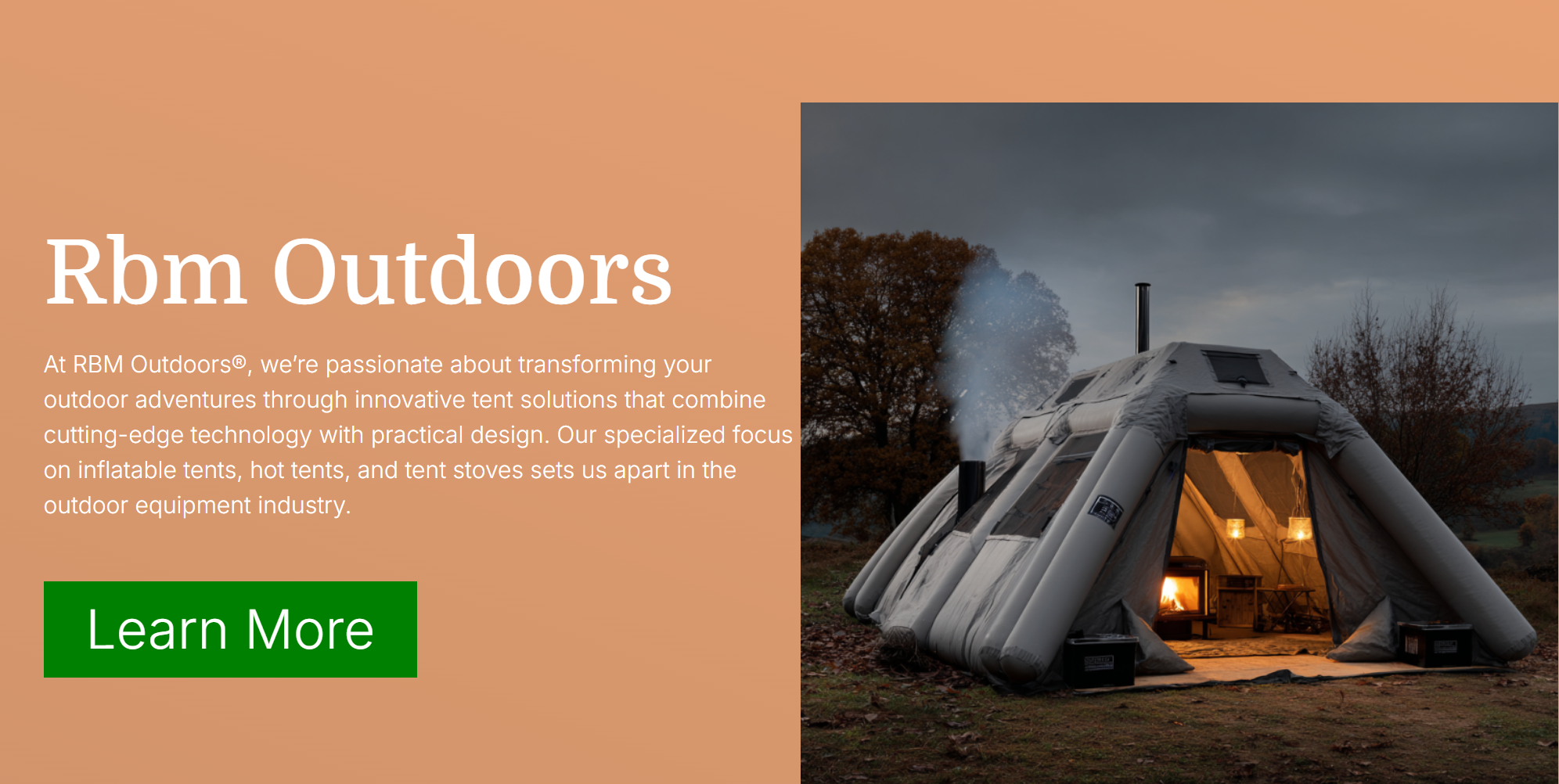 At RBM Outdoors®, we’re passionate about transforming your outdoor adventures through innovative tent solutions that combine cutting-edge technology with practical design. Our specialized focus on inflatable tents, hot tents, and tent stoves sets us apart in the outdoor equipment industry.